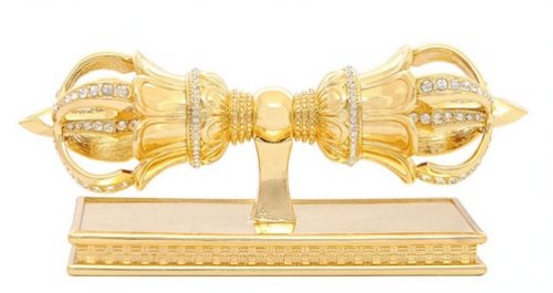 Na šátku jsou mocné symboly Feng Shui: slabika Om, Lotos, Dharma kolo a Mystický Uzlík, včetně mantry plnící všechna přání.
